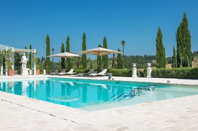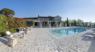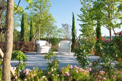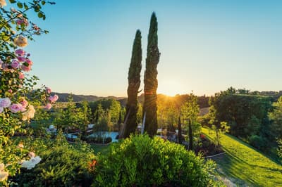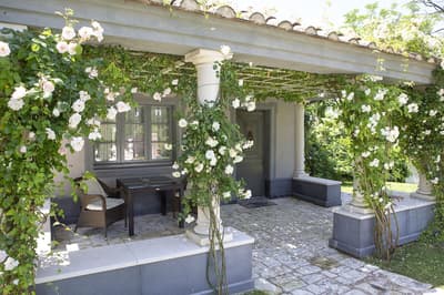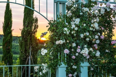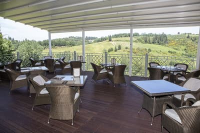 Luxueuse, elle offre une vue suggestive qui s'étend des collines verdoyantes aux jardins fleuris, de la roseraie romantique à la piscine Vitality avec ses jeux de lumière; vous pourrez vous détendre et contempler le paysage tout en sirotant votre boisson préférée.