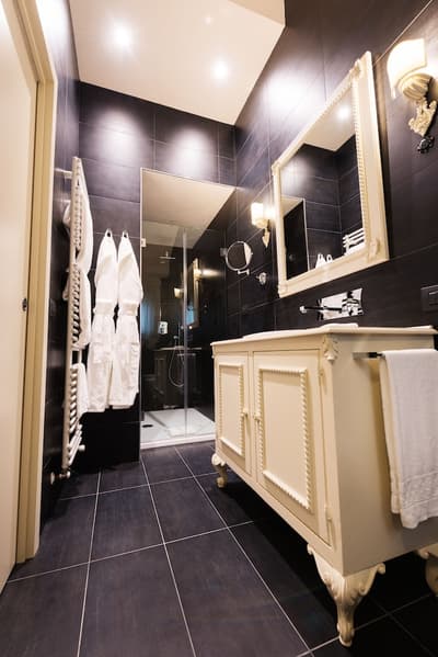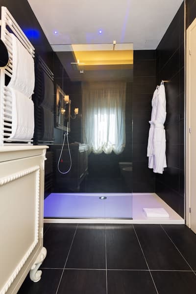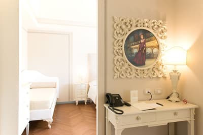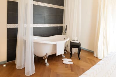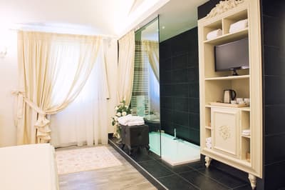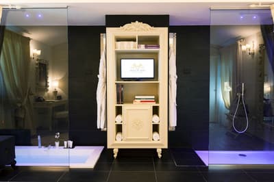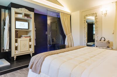 Elle se caractérise par des poutres apparentes, un parquet en chêne clair, un ameublement au luxe discret et raffiné, des couleurs délicates et des matières précieuses. La chambre est dotée d’un grand lit confortable et peut disposer d’une grande douche à deux postes avec chromothérapie, séparée du reste de la pièce par un magnifique mur de cristal ou d'une baignoire avec chromothérapie de style Belle Époque, au pied du lit, en plus de la douche équipée de chromothérapie située dans la salle de bains.