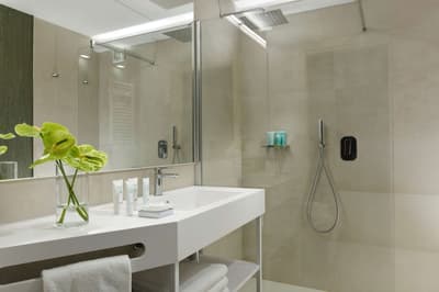 L’ensemble est dans un style de décoration charmante et contemporaine avec un mobilier pratique et se complète harmonieusement dans une dominance de blanc. Après vos activités de la journée, vous pourrez vous rafraîchir dans la grande salle de bains privée équipée d’une douche. Le tout dans une atmosphère zen !