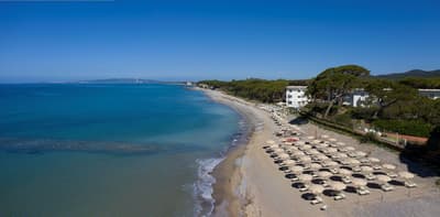 Embarquez pour un voyage immersif au cœur du golfe de Follonica ! The Sense Experience Resort se veut une expérience sensorielle à 360°. Une immersion 100 % plage, dunes et pinède... Sensations, perceptions et émotions sont ici les maîtres mots : on se connecte à la nature grâce aux matériaux utilisés à l’intérieur, aux saveurs des produits locaux, aux sons et aux parfums. Le défi était de transformer une colonie de vacances en resort exclusif, aux prestations de haut standing. Mais surtout en resort green. Pari réussi ! La structure s’inscrit dans un vaste parc aux arbres centenaires et des dunes parfaitement préservées. La façade vous accueille par des miroirs de récup’ en mosaïque blanche et vert aqua, évoquant la pinède et la mer. Extérieur et intérieur, nature et structure se confondent... Et avis aux fans de bronzette et de snorkeling, le spot est top ! Vous allez kiffer la plage privée de galets et de sable : 250 mètres rien qu’à vous, avec des lits de plage stylés. Baladez-vous dans les dunes ou dans la forêt de pins : il y a comme un goût des Landes, mais en Toscane, avec une eau à 23°. L'occasion d'expérimenter le kitesurf ! A moins de siroter un cocktail autour de la piscine ou les pieds dans le sable, en admirant l’île d’Elbe au loin. Et sinon, les créations du Red Rabbit Bar titillent vos papilles et le coucher de soleil vous achèvera. #WhatAreYouWaitingFor ?