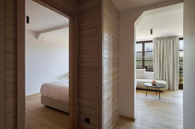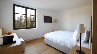 Dressing avec coffre-fort, Sièges, Minibar, Bureau, Poêle en faïence traditionnel, Douche à effet pluie, WC séparé avec bidet, Sèche-cheveux, Commodités FORESTIS.
