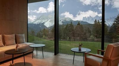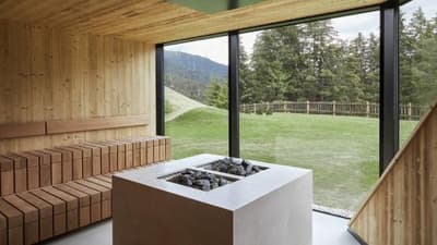 Le Forestis Dolomites Boutique Hotel se dresse à 1 800 mètres d’altitude, au beau milieu de la forêt, sur le versant sud du mont Plose. Déjà sacré à l’époque des Celtes, le lieu libère une énergie palpable qui investit tout naturellement ce 5 étoiles au design minimaliste. Taillées dans la pierre locale, les piscines intérieure et extérieure sont remplies de l’eau de source coulant de la montagne. Le bois habillant sols et murs dégage, d’après les spécialistes, des parfums éthériques vertueux. En effet, ils réduisent le stress et améliorent la qualité du sommeil. D’ailleurs, le Forestis SPA allie quatre essences différentes en son sein : le pin de montagne, le pin Cembro, l’épicéa et le mélèze. Vous retrouvez la combinaison de ces essences par exemple dans le rituel du Cercle des arbres, un massage qui mélange sylvothérapie et lithothérapie pour défaire tensions et blocages. En soirée, vous vous poserez d’abord sur la terrasse panoramique avant de rejoindre le roofto-bar situé dans le bâtiment historique. On y sert des cocktails à base d'essences naturelles, à goûter devant un feu de cheminée…