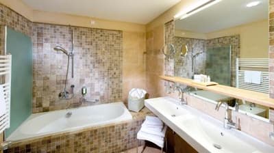 Luxueuse, l’ensemble est dominé par le bois avec un parquet chaleureux en chêne et se complète harmonieusement dans des tons neutres. La chambre est dotée d’un lit king confortable et après vos activités de la journée, vous pourrez prendre un bain relaxant dans la salle de bains privée équipée d’une baignoire et d’une douche combinée. Le tout dans une atmosphère cosy !