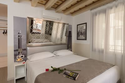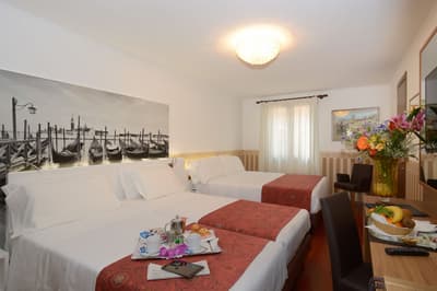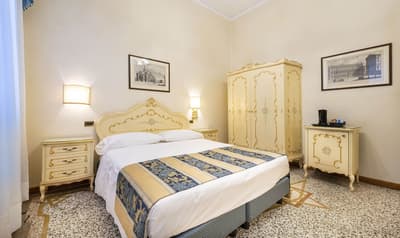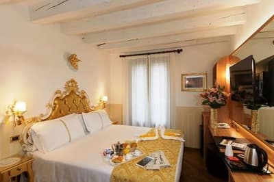 Elle peut donner sur le typique "Rio" Canal di Santa Maria Zobenigo; très apprécié par les hôtes qui peuvent ainsi observer les gondoles et les sérénades ou sur le charmant Campo Santa Maria del Giglio, où vous pourrez admirer la douceur et la lenteur des journées vénitiennes. Après vos activités de la journée, détendez-vous, tout en sirotant un bon café.