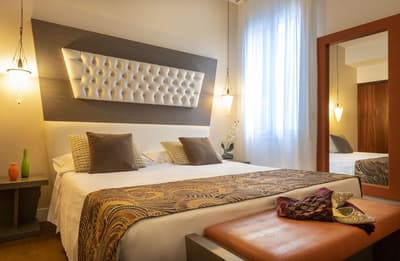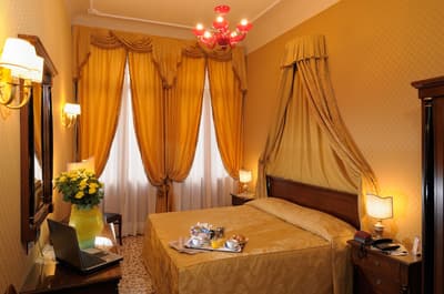 Un hôtel typique de Venise, réservé aux adultes, à deux pas de la place Saint-Marc, qui propose un toit terrasse génial avec vue sur la ville.