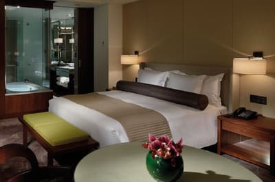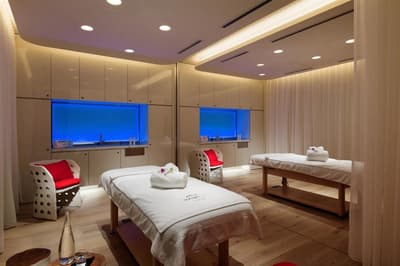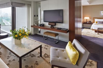 Linge de bain Imabari, Produits d'accueil pour le bain de Bamford, Peignoirs et pantoufles, Vêtements de nuit, Sèche-cheveux, Bouilloire électrique, Machine Nespresso, Coffre-fort dans la chambre avec prise de courant intégrée, Télévision HDR 4K de 55 pouces, Télévision LCD étanche de 16 pouces dans la salle de bains, Lecteur Blu-ray / DVD / CD, Enceinte Bluetooth Bose Soundlink Mini.