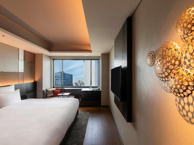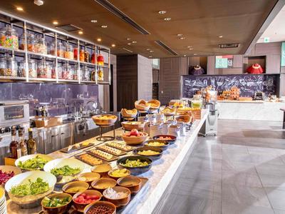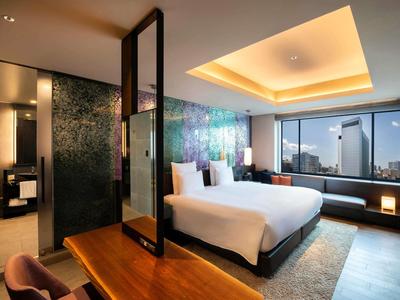 Bienvenue dans le premier Pullman de Tokyo ! Dans ce quartier de Tamachi ultra-moderne, vous allez séjourner dans une tour... moderne. A la clé : une sublime vue sur la baie de Tokyo ! Vous vous sentirez déjà bien en arrivant sur ce parvis aéré et cette terrasse de chaises oranges qui vous tend les bras pour un verre. Et dès l’entrée, le minimalisme et la folie des grandeurs règnent ! Vous allez adorer les banquettes texturées, les peintures japonaises colorées grand format et les cultures style origami qui ornent les murs. L’hôtel, qui a ouvert ses portes en 2018, a été pensé pour offrir une vision du Japon du 21e siècle. Résultat : la tradition des matières, des motifs et les clins d’oeil au théâtre Kabuki s’accordent avec toutes les tendances d’aujourd’hui. Hello les enceintes Bose et Netflix dans les chambres et le wifi hyper puissant ! Dans les chambres, on retrouve ce même jeu de textures sur les tapis et même sur les murs en guise de tête de lit, avec cette vue géniale. Breakfast alerte ! A l’heure du petit déjeuner, direction le lounge, où un buffet gargantuesque vous attend ! Une vraie orgie de fruits, de pains en tout genre, de graines et de céréales, de spécialités japonaises et tous les incontournables occidentaux ! C’est une expérience vraiment agréable tout confort qui vous attend ici ! On repart avec le sourire !