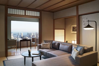Au Ritz-Carlton Tokyo, vous dormez dans la Midtown Tower, l’un des plus hauts buildings de la capitale japonaise ! I Believe I can fly entre 45e et le 53e étages ! Dès le lobby, le luxe vous enveloppe avec ces sols en marbre merveilleux qui brillent, les lustres en cristal, ces grandes colonnes en bois, les oeuvres d’art surdimensionnées et les fleurs fraîches disposées chaque jour pour la touche smart... Un bar délicieux est installé ici avec de la musique live presque tous les soirs. L’ambiance est fraîche, douce, enveloppante… La hauteur sous plafond est impressionnante, les tapis et tapisseries soft touch donnent un air de château franchement inattendu à cette altitude au-dessus du sol japonais — avec cette vue géniale sur la tour de Tokyo et le Fuji San : on attend le sunset comme des enfants pour le spectacle ! Spa primé, resto avec un macaron Michelin : cet hôtel 5 étoiles collectionne les repères d’un lieu haut de gamme sensationnel avec un service exceptionnel. Laissez-vous envelopper par la magie des lieux, en plongeant dans la piscine de 20 mètres de long ou en savourant l’un des 200 whiskies du bar so instagrammable ! De sublimes afternoon teas avec un festival de pâtisseries et de clubs sandwiches vous attendent aussi dans ce Lounge. L’endroit peut paraître un peu bling bling, mais le niveau d’attention et de service est vraiment élevé.