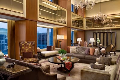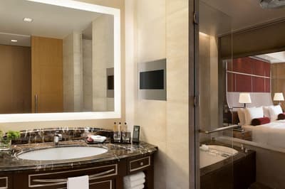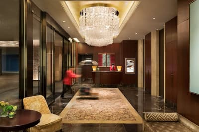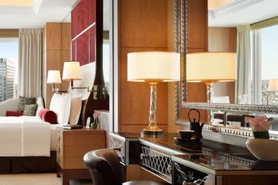 L’esthétique est si poussée dans la tour du Shangri-La Tokyo que vous vous croirez dans une estampe japonaise en constant mouvement... Dans cet hôtel vertigineux, imaginez-vous, le regard hypnotisé par le coucher de soleil derrière la sky view de Tokyo ! Un spectacle dont vous vous souviendrez toute votre vie dans cet univers de velours, de marbre, d’arabesques.… Assez bling bling mais agréable. And look ! Les lustres ultra-shiny et ultra-massifs façon princesse sont comme des millions de papillons blancs. Le lobby et le resto japonais vous racontent un haïku avec ces feuilles rouges suspendues en l’air, au-dessus d’une sculpture qui ressemble à un livre. Même les étagères sont de véritables oœvres d’art avec leurs grillages effet mosaïques et ce jeu de lumière dont les Japonais ont le secret. Relaxation assurée ! Mais attendez ! Vous êtes loin d’avoir tout vu… Le marbre noir recouvre aussi les salles de bain de l’hôtel, et le spa Chi fait partie des meilleurs de la ville avec sa piscine de 20 mètres. Après avoir goûté au petit déjeuner royal, digne d’une corne d’abondance avec ses viennoiseries, ses pâtisseries, ses fruits frais, ses spécialités japonaises, ses oeufs et autres panckaes, c’est clair : vous ne voudrez plus repartir. Une escale absolument paradisiaque vous attend ici. Avec tout le raffinement signé Shangri-La.