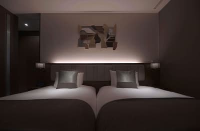 Dans un style soigné et contemporain, la pièce est un espace de détente qui ressemble à une scène de film avec une belle moquette au sol, un mobilier et des accessoires design et se complète dans des tons apaisants. La chambre est dotée de lits jumeaux douillets avec une literie de qualité et d’un dressing spacieux pour des habits impeccables. La salle de bains en marbre est équipée d’une douche et d’une baignoire et de toutes les commodités nécessaires. Ambiance relaxante !