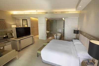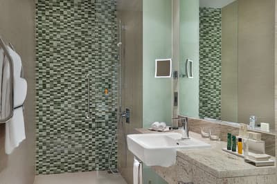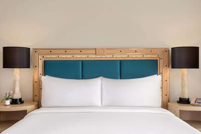 Elle bénéficie d’une décoration contemporaine avec un mobilier épuré, des luminaires design et se complète dans des touches de bois. Après vos activités, détendez-vous tout en sirotant une bonne tasse de café. La chambre est dotée d’un lit king Hilton Serenity avec une literie de qualité et la salle de bains est équipée d’une douche à l'italienne à effet pluie. Le tout dans une ambiance relaxante !