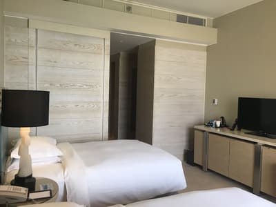 Elle bénéficie d’une décoration contemporaine avec un mobilier épuré, des luminaires design et se complète dans des touches de bois. Après vos activités, détendez-vous tout en sirotant une bonne tasse de café. La chambre est dotée de deux lits doubles Hilton Serenity avec une literie de qualité et la salle de bains est équipée d’une douche à l’italienne à effet pluie. Le tout dans une ambiance relaxante !