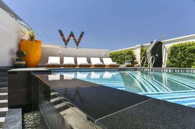 Le W Amman est complètement psychédélique ! Et dans le bon sens du terme. Quand on arrive de nuit, cette grande tour noire marquée d’une ligne verticale rouge, avec son W on top, donne tout de suite le vertige ! On s’attend à voir débarquer un super-héros à tout moment. L’entrée « canyon » ultra-design, avec ses parois qui semblent se refermer sur nous, fait penser au célèbre défilé de Pétra… On ne sait plus où donner de la tête avec ces néons flashy et toutes ces formes, ces jeux de lumière et de reflets partout ! On craque pour le lobby constitué de salons de thé design qui s’inspirent de la culture locale : un avant-goût de cet établissement qui a su si bien mêler tradition et avant-gardisme. Les chambres et suites, à l’image du reste, sont trop originales ! Qui dit moderne, dit aussi, parfois, agencement inédit : il n’y a que dans un hôtel W qu’on se brosse les dents en tournant le dos au panorama des sept collines d’Amman. Les tissus joyeux évoquent eux aussi la riche histoire de Jordanie. Vous verrez, on s’habitue vite à ce décor coloré et futuriste, surtout quand on passe la journée à faire la crêpe sur un sun bed au bord de la piscine ou qu’on sirote un cocktail sur la terrasse, face à une magnifique fresque murale.