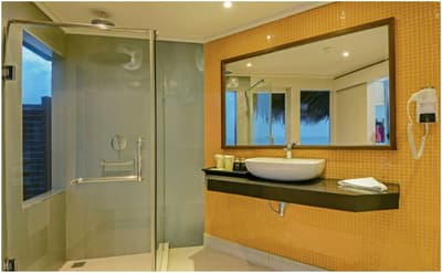 Elle bénéficie d’une décoration crème et pastel et comprend un lit confortable, un élégant mobilier en bois et une literie à thème tropical. Elle dispose d’installations, modernes et confortable, le tout baigné dans une atmosphère tropicale et chic à la fois!