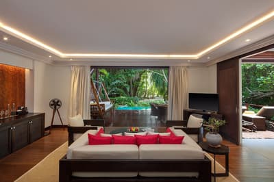 Climatisation, Jaccuzzi, Wi-Fi disponible dans la chambre, Minibar (en supplément), Télévision par satellite, Téléphone avec ligne directe, Thé/Café, Douche extérieure, Deux chaises longues, Coffre-fort dans la chambre.