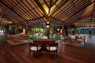 Première chose qu’on remarque en arrivant à l’hôtel Adaaran Select Meedhupparu : le cui-cui des oiseaux ! Sur fond de silence assourdissant, ce chant fait vraiment du bien aux oreilles. L’île a des airs de bout du monde, surtout quand le ciel s’assombrit, que le sable n’en est que plus blanc et que le turquoise de l’océan, d’habitude si cristallin, devient presque laiteux. Elle a gardé son aspect sauvage grâce à une végétation généreuse. Sortez sur la terrasse privative de votre Beach Villa, ne chaussez rien du tout, posez vos pieds sur le sable rafraîchi par l’ombre des palmiers et faites quelques pas : vous êtes sur la plage ! Vous pouvez rester ici à repérer les pointes noires des requins inoffensifs ou revêtir votre équipement de snorkelling pour aller découvrir un monde de poissons multicolores. Une aventure accessible même aux plus petits, quand ils ne sont pas en train de s’amuser au Kids Club ! Sinon, toutes les villas sont confortables et décorées simplement, mais possèdent un avantage non négligeable : la douche effet « chute d’eau » en extérieur. Détail qui nous fait tout de suite craquer... Une petite (ou grosse !) faim ? Dans ce resort all inclusive (le top sur une île pas vraiment donnée), il y a plusieurs restaurants et bars, joliment ouverts sur le paysage verdoyant et la mer. Ainsi qu’une piscine, of course ! Mais ce qui distingue vraiment cet hôtel, car après tout du sable fin, aux Maldives, on en voit beaucoup, c’est qu’il s’attache à préserver un environnement fragile. Et qu’il nous invite à faire de même.