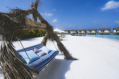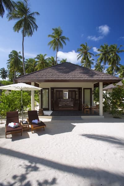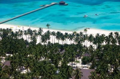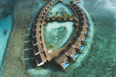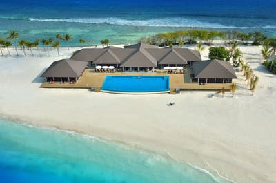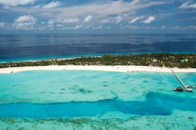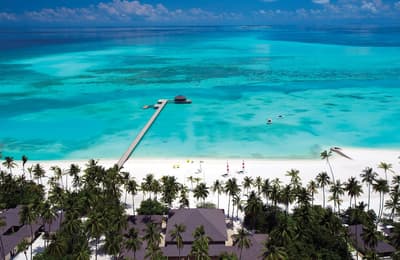 Une atmosphère très maldivienne se dégage de l’Atmosphere Kanifushi, un resort de carte postale qui coche toutes les cases du paradis maldivien ! Arrivée en hydravion, salle de bains ouverte sur l’extérieure, villas sur pilotis, hospitalité du personnel aux petits soins… Cette île-hôtel de rêve se caractérise aussi par ses 4 km de plages, un record aux Maldives, ses six restos dont un totalement végétarien, et sa formule All Inclusive — qui comprend le minibar des villas, les cocktails, les repas, les activités nautiques non motorisées et la sortie de pêche au coucher du soleil. L’animation axée sur la culture locale comblera petits et grands. On explore cette île toute en longueur à pied à vélo ou en voiturette électrique, du spa au mini-club avec sa piscine enfant, de la salle de sport aux terrains de tennis, de l'infinity pool adult only jusqu’au centre de plongée PADI. Sans oublier l’arrêt au dance floor du bar. Vous l’aurez compris, voici un resort ultra-complet pour toute la famille, couronné par une fibre écolo récompensée par la très sérieuse certification Green Globe.
