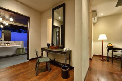 En bord de mer, sa grande piscine donne directement sur le sable fin. Elle baigne dans une atmosphère de luxe en tout calme. C’est un petit sanctuaire isolé entouré de végétations tropicales luxuriantes. Dispose d’une terrasse aménagée de belles chaises et de transats sur la plage. Salle de bain semi-extérieure avec baignoire à remous et 2 vasques.