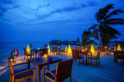 Vous pouvez oublier les tongs : vous en aurez à peine besoin au Centara Ras Fushi Resort & Spa pour vivre votre idylle aux Maldives. Dans cet hôtel de luxe réservé aux adultes, c’est l’amour à plage garanti, et pieds nus ! A vous la villa privée sur le sable ou carrément nichée sur des pilotis pour plonger directement dans le lagon au réveil — ou à tout moment de la journée ! Même pas besoin de tuba et de masque pour observer les poissons ici… Ils passent sous votre terrasse en toute décontraction. Mais si vous voulez les voir de plus près, n’hésitez pas à réserver une session de plongée sous-marine, l’hôtel détient son propre centre certifié PADI. A moins que vous ne vous contentiez d’un tour en paddle pour observer les fonds marins dans cette eau cristalline ! Tellement relaxant ! Et la relaxation continue au spa, où vous pourrez profiter d’un délicieux massage thaï ou d’un soin ayurvédique. Le soir, vous prolongerez encore l'aventure dans l’un des nombreux restaurants qui proposent de voyager un peu plus loin. Bien sûr, vous pouvez opter pour les spécialités maldiviennes, mais aussi mettre le cap sur l’Orient, avec des délicieuses grillades épicées, ou sur l’Italie, avec un risotto aux fruits de mer. Sans oublier l’incontournable table thaïlandaise, qui vaut bien des points ici… Bref, voilà un spot pensé pour les amoureux en quête de plage paradisiaque dans une villa privée moderne !