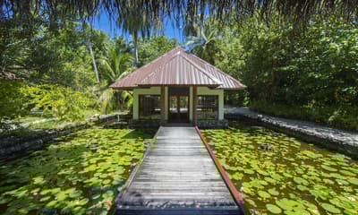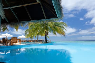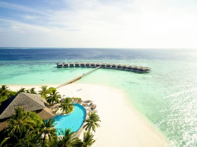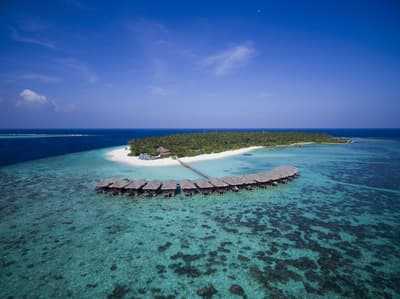 L’unique île-hôtel de l’atoll de Faafu, une adresse tranquille où on se contente du minimum maldivien : arrivée en hydravion, spa, plongée, restaurant local, piscine à débordement face au lagon, villas sur pilotis ou sur la plage. Mais finalement, que demander de plus ?