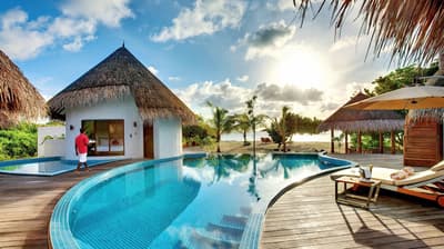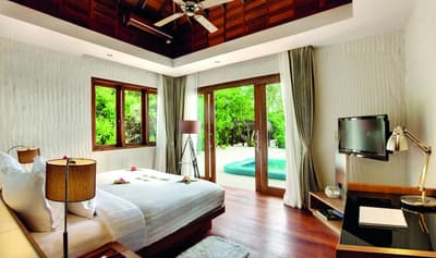 Elle est située sur une plage privée, à quelques pas de l’océan et dispose d’une véranda meublée d’où vous pourrez vous détendre en toute intimité. À noter qu’un majordome personnel vous aidera à personnaliser votre séjour et répondra à vos besoins. Durant vos vacances, vous bénéficierez de tout le confort que cette chambre a à offrir.