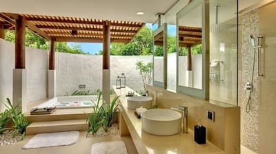 Cette luxueuse résidence dispose d’une piscine à vagues et est située dans un jardin tropical luxuriant. Sur la grande terrasse, vous pourrez vous prélasser sur les chaises longues et profiter du soleil. À noter qu’un majordome personnel vous aidera à personnaliser votre séjour et répondra à vos besoins.