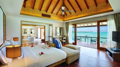 Spacieuse, elle peut accueillir des familles ou des groupes et dispose d’un accès à la plage privée de sable blanc. À noter qu’un majordome personnel vous aidera à personnaliser votre séjour et répondra à vos besoins. Durant votre séjour, vous bénéficierez de tout le confort que cette chambre a à offrir.