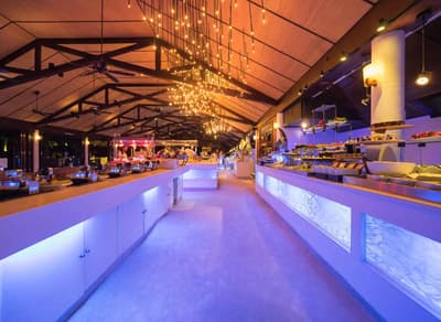 Posé sur une île toute en longueur, sertie par un fabuleux récif corallien où évoluent des bans de poissons tropicaux, le Lily Beach est d’abord un paradis pour snorkelers et plongeurs, qui apprécieront les instructeurs francophones très compétents. La beauté des fonds marins est mise en valeur par de superbes Water Villas, excellents points de départ pour se lancer dans l’eau translucide avec masque et tuba. Sur la plage, les villas sont immergées dans la végétation, en particulier les nouvelles suites design inaugurées en 2019. L’ambiance décontractée du resort est son autre grand point fort : le luxe est présent dans les moindres détails mais vous n’aurez aucun aucun problème à enlever vos chaussures. Si vous n’avez jamais testé de séjour all-inclusive, c’est le moment d’y remédier car celui du Lily Beach est exceptionnel : champagne à tous les repas si l’envie vous prend pour accompagner un buffet impressionnant proposant des plats d’inspirations française, japonaise et maldivienne, boissons fraiches à volonté dans des glacières disposées sur la plage, plusieurs excursions dont une sortie pêche et une croisière au coucher du soleil… Et pour vos chérubins, un “Turtle Club“ au cœur de l’île, avec plusieurs aires de jeux mais aussi de nombreuses activités.