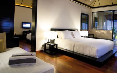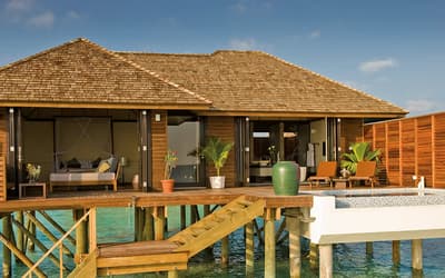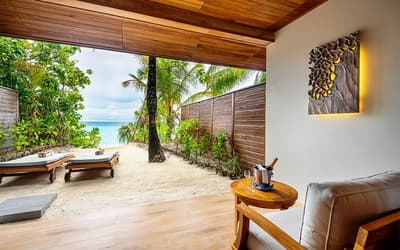 Conçue pour accueillir toute une famille, elle est spacieuse et confortable constituée de 2 villas communicantes. Installée en bord de mer, elle offre une vue époustouflante sur le rivage. Elle est nichée au milieu de la verdure luxuriante se situant sur la plage et offre un accès direct vers l’océan. Sa terrasse est aménagée de chaises longues pour profiter du charme typique des Maldives : du soleil et du sable fin ! Convivial tout en offrant intimité, c’est le top pour des vacances en famille.