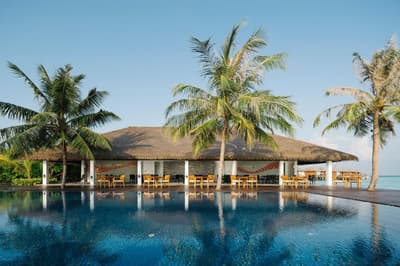Pour un séjour au paradis, misez sur le Noku Maldives Resort ! Niché dans l’atoll de Noonu, l’hydravion vous dépose sur l'île ultra-préservée où trône cet établissement à la conscience écologique. Vous allez être surpris par l’harmonie des lieux. Rien de trop ici, tout est juste, et cela commence par votre sublime villa, qui vous tend les bras sur fond de sable blanc corallien tout doux ! Tous les hébergements affichent un joli toit de chaume, des pierres naturelles et du bois local, et une terrasse de fou pour profiter à fond du soleil des Maldives. Et pour un cran de plus sur l’échelle du luxe, vous pouvez aussi choisir l’option piscine privée. Sur la plage ou sur pilotis au-dessus du lagon, les villas sont toutes canons avec leur déco élégante et leurs meubles sombres qui dialoguent avec des murs blancs immaculés. Regardez ! Vous voyez passer des raies élégantes et des poissons tropicaux sous vos yeux ! Et si vous voulez prolonger le plaisir, attrapez un paddle ou un kayak et partez naviguer sur cette eau cristalline. Envie d’adrénaline ? Optez pour le wakeboard ou pour une session de plongée sous-marine ! Ensuite, pour faire retomber un peu toute cette excitation, on vous conseille de pousser la porte du spa, génialissime, avec des soins et des massages à tomber par terre, ou alors de participer à un cours de yoga. Car on le sait, vous venez aussi pour vous régaler de bonnes choses à manger. Et ça tombe bien, car les deux restos proposent une cuisine raffinée ! Avec une petite préférence pour le Thari et ses spécialités asiatiques et maldiviennes. Sinon, les enfants sont les bienvenus, mais ici, c’est clairement un repaire d’amoureux :)