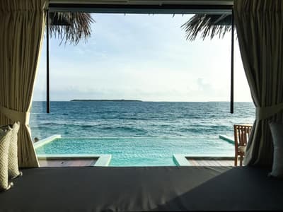 C’est le top d’une expérience avec les pieds dans l’eau ! Installée au-dessus du lagon maldivien, elle offre une vue époustouflante sur le lagon maldivien de sa piscine. Elle permet un accès direct à l’eau limpide. Petit coin salon avec fauteuils. Grande salle de bain avec baignoire et douche à effet de pluie.