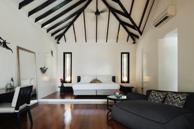 Incroyablement spacieuse, c’est le top ! Idéale pour une famille, elle dispose de 2 chambres et d’un salon des plus agréables. Ce bungalow est entouré par la végétation luxuriante et baigne dans une atmosphère paisible. D’une dimension généreuse, la terrasse est aménagée d’une piscine et de longues chaises. Elle permet un accès direct à la plage au sable fin et c’est l’idéale pour se relaxer. Grande salle de bain avec baignoire et douche à effet de pluie.