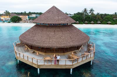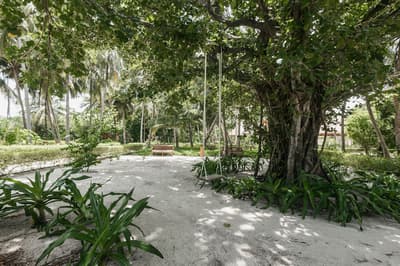Hamac suspendu entre les cocotiers, balançoire accrochée aux arbres, tables installées sur la plage… On vit au plus près de la nature au Reethi Faru, Bio Luxury Resort ! Et voilà un hôtel très engagé pour préserver son environnement : doté du label Travelife Gold, il a gagné l’award en 2019 du resort le plus green de l’océan Indien ! Et vous connaissez le concept « no news, no shoes » ? L’hôtel ne le met pas en avant, mais aurait très bien pu le faire, du moins pour la partie chaussures. On fait à peine un pas sur l’île, fraîchement débarqué du bateau ou de l’hydravion, qu’on quitte instantanément nos tongs. On peut se balader ici pieds nus, à longueur de journée, mais aussi garder nos orteils bien au chaud dans le sable fin et doux en sirotant un verre au bar, en jouant au baby-foot ou en faisant du yoga ! C’est peut-être pourquoi on craque pour les villas sur la plage plus que pour celles sur pilotis — une fois n’est pas coutume... Depuis notre terrasse, on saute dans le sable, toujours protégé du regard par le feuillage généreux, pour rejoindre nos deux bains de soleil. Un paradis intime, qu’on ne délaisse que pour plonger dans l’eau cristalline ou se détendre entre des mains bienveillantes et expertes au Coconut Spa. Autre petit coin idyllique : notre douche extérieure à l’inspiration orientale. Pas assez Robinson Crusoé ? Laissez-vous déposer par un bateau sur une île déserte !