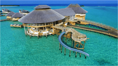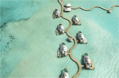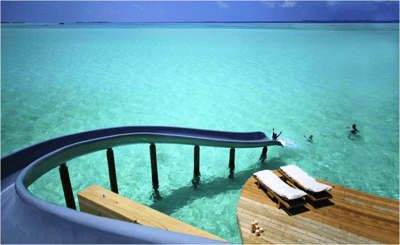 La deuxième adresse de la marque Sovena aux Maldives a vu le jour en 2017 sur une île de 60 hectares, au cœur d’un grand lagon inhabité. Contrairement au Soneva Fushi, ce resort est quasiment entièrement bâti sur l’eau, ce qui ne l’empêche pas d’être respectueux de l’environnement. Autour d’une grande cabane en bois, The Gathering, abritant restaurants, glacier, fromager et d’innombrables coussins disséminés un peu partout, une longue passerelle déploie de part et d’autre une vingtaine de villas sur pilotis avec piscine privée et terrasse perchée d'où partent d’étonnants toboggans plongeant dans le lagon. Un esprit ludique et bohème flotte sur ce resort à taille humaine où l’on vient autant pour nager avec les tortues, jouer avec les dauphins au coucher du soleil ou observer la Grande Ours à la lunette, que pour vivre une moment de “slow life“, loin de l’agitation du monde. Le Soneva Jani combine activités qui ont du sens, sortie pêche avec un local ou exploration des plantes du potager suivi d’un cours de cuisine, avec des expériences qui éveillent les sens, comme un massage apaisant au Spa Six Senses ou un dîner sur la plage éclairé par la pleine la lune.