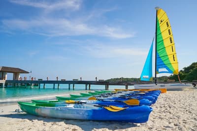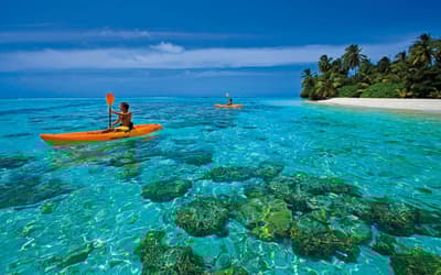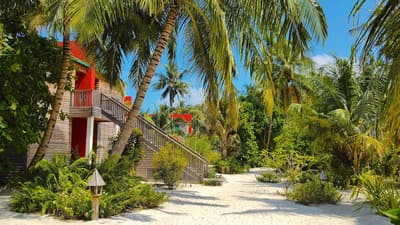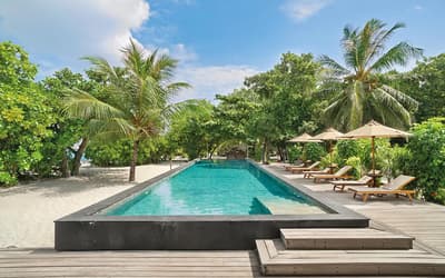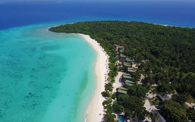 Situé sur l’île de Hanimaadhoo, au nord de l’archipel des Maldives, dans une zone préservée proche d’une forêt et d’un village de pêcheurs, ce petit hôtel de 64 chambres (et 5 superbes villas maldiviennes traditionnelles !) est posé au bord d'une splendide plage de sable blanc baignée par un lagon turquoise. Tout en bois, avec une décoration sobre, c'est un havre de paix où on vient déconnecter (au menu, spa et cours de yoga <3 ). C'est aussi le spot idéal pour la pratique des sports nautiques et surtout pour la plongée (vous irez à la rencontre des raies et des tortues !). Une fois sur place, oubliez votre téléphone portable (qui n'est pas le bienvenu dans les zones publiques de l'hôtel) et savourez les dégradés de bleu de l'océan Indien ainsi que la cuisine du chef italien. Le top : l'engagement de l'hôtel en faveur de l'environnement et des populations locales est réel.