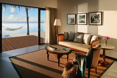 Conçue pour trois personnes, elle profite d’une véranda privée d’où vous pourrez vous détendre et profiter du soleil des Maldives, tout en admirant l'aquarium vivant sous vos yeux. Dans le salon spacieux, vous pourrez admirer la vue exceptionnelle sur l’océan, tout en vous laissant porter par les vagues douches qui clapotent à votre porte.