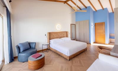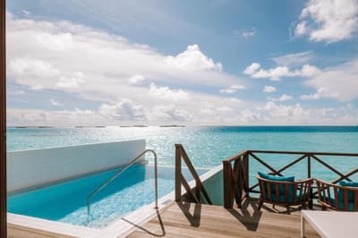 Un tout nouveau complexe situé sur un petit atoll des Maldives avec des suites et des villas qui donnent directement sur le sable blanc et l’eau turquoise.