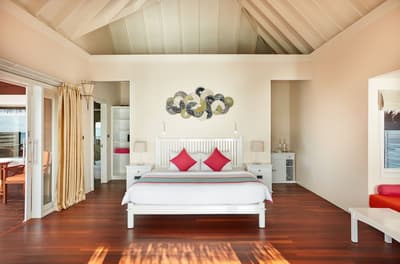 Les Aqua Villas sont au nombre de 6 et sont situées sur le lagon. La décoration est simple et fraîche, avec de beaux interieurs blancs réhaussés de quelques pointes de couleurs tropicales. Toutes les villas ont une terrasse qui permet de plonger directement dans les eaux turquoises. Elle est complètement équipée avec des transats, une table, des chaises et une petite piscine privée. Un grand hammack surplombe le lagon. Une grande salle de bain avec baignoire et douche à l'italienne complètent le tableau.