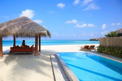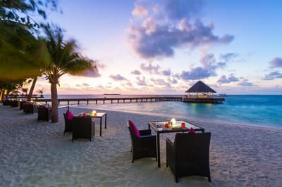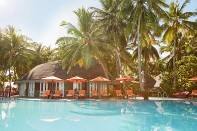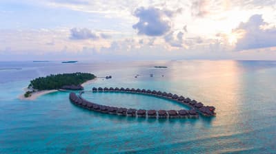 Boutique-hôtel 5* de 103 chambres, le Sun Siyam Vilu Reef est particulièrement recommandé aux couples en lune de miel, ce qui n’empêche pas les enfants d’y avoir leur mini-club ! Proposé notamment en formule All Inclusive, il se distingue par sa barrière de corail particulièrement riche en vie marine, à seulement 20 mètres de la plage de sable blanc... Ajoutez l’arrivée en hydravion, les villas sur pilotis et le spa primé, cet écrin de charme coche toutes les cases de la carte postale maldivienne ! Une petite île ovale de 400 mètres de long qui trouve tout de même de la place pour sept bars restaurants, un spa aux multiples récompenses, un club enfant bien équipé, un centre de fitness et un terrain de tennis ! Il est vrai que les 41 villas sur pilotis, formant une belle figure ovale sur le lagon cristallin, laissent de la place... Au programme des réjouissances, dégustation de vin, cinéma sous les étoiles, plongée avec les tortues et les raies manta, danses traditionnelles, virée en catamaran à la recherche des dauphins et excursions sur l’île voisine à la rencontre des fermiers. Le personnel, adorable, vous sensibilisera à la protection du corail et des océans. Et tout ça avec l'empreinte éthique et écologique exigeante du groupe hôtelier local Sun Siyam !
