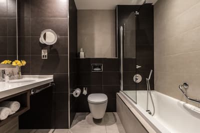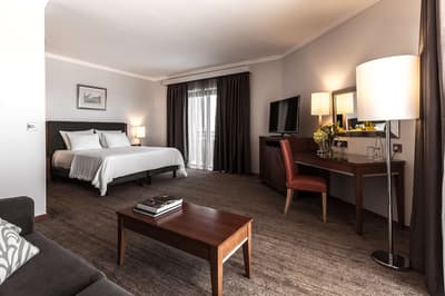 Agréable et confortable, elle a tout le nécessaire pour un séjour superbe. Le balcon est meublé de belles chaises pour apprécier la vue sur la ville. Elle accommode un grand lit king et dispose d’un bureau. Salle de bain avec douche à effet de pluie.