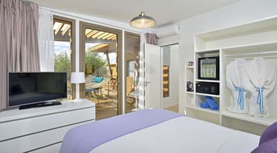 Mini-bar, Douche à effet pluie, Sèche-cheveux professionnel, Articles de toilette, Coffre-fort dans la chambre, Wi-fi gratuit, Climatisation, TV à écran plat, Téléphone, Spa, Terrasse, Café et Thé.