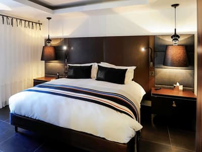 L’intérieur bénéficie d’une décoration luxueuse et la chambre est dotée d’un lit King et d’un mobilier en cuir. La salle de bains est équipée d’une douche, d’un double vasque et de produits de bain. Le tout dans une ambiance détendue et tropicale !