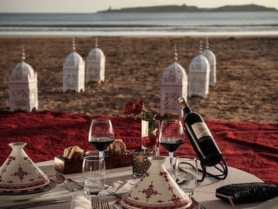 Vous hésitez entre évasion et cocooning ? Choisissez les deux ! Avec son emplacement parfait et sa thalasso à tomber, le Medina Essaouira fait rimer authenticité avec sérénité. Imaginez un boutique hôtel de seulement 117 chambres posé au bord d’une plage privée. En face, les îles de Mogador qui se détachent sur le bleu de l’océan. A cinq minutes à pied, Essaouira et ses remparts couleur sable de ville fortifiée. Port, médina, galeries d’art, boutiques d’artisanat… tout est à proximité. L’hôtel mélange subtilement look de riad marocain et design contemporain. Le bâtiment aux pierres colorées est parsemé d’arcades mauresques et de touches Art déco stylées. Hospitalité locale oblige, vous êtes accueilli par le sourire chaleureux des portiers. Le lobby est particulièrement élégant : puit de lumière, mélange d’artisanat local et de modernité, sols en marbre blanc. Thé à la menthe, serviettes chaudes… le personnel est hyper attentionné. L’hôtel est conçu autour d’une immense piscine, tellement bleue qu’il est impossible de résister ! Mais si vous préférez vous prélasser, no problem ! Transats et cabanes sont prévus à cet effet ! Envie de fouler le sable doré ? La plage accueille un bar et des lits à baldaquin privés. Si les chambres sont d’un confort raffiné, l’institut Thalasso & Spa est top pour se ressourcer. Installations luxueuses, personnel expert et ambiance feutrée. A vous les actifs marins et les secrets de beauté marocains.