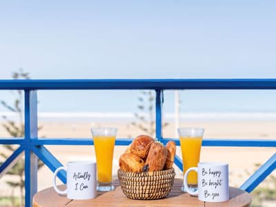 Idéale pour les couples, elle baigne dans une atmosphère romantique et sereine. Elle profite d'une vue panoramique sur la baie d’Essaouira. Son balcon est aménagé de belles chaises en rotin pour apprécier le cadre reposant. Coin salon avec fauteuils et petite table. Salle de bain avec baignoire.