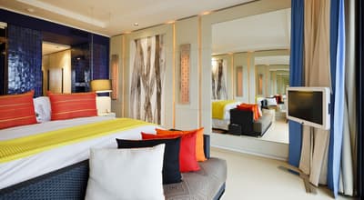 Internet sans fil en chambre, Peignoir, Pantoufles, Menu Oreiller, Petit déjeuner servi en chambre, Lit Mybed, Dressing, TV écran plat, Coffre-fort, Salle de bains avec baignoire et douche, WC séparé, Mini-bar, Espace salon.