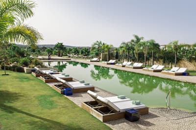 Vous voulez une expérience écolo-chic avec vue panoramique sur l’Atlantique ? Si en plus vous ne vous déplacez jamais sans vos clubs de golf, ne cherchez pas plus loin ! Cet hôtel est fait pour vous ! Il se trouve dans la station balnéaire de Modagor, à 4 km d’Essaouira. Posté sur une colline, le bâtiment surplombe l’océan. La plage est accessible à pied après une balade le long d’un chemin sécurisé. Dans cet espace préservé, tout vous parle de nature. Le domaine est immense et ses espaces verts luxuriants lui donnent un look de jardin d’Eden aménagé. Dès votre arrivée, difficile de ne pas tomber sous le charme de l’architecture et du design raffinés. Fidèles au style local, les bâtiments en pierres d’Essaouira sont colorés. L’artisanat marocain est décliné en mobilier, fer forgé, zellige et moucharabiehs. Dans le lobby, des troncs d’arbres et un immense mur végétal annoncent la couleur. L’endroit est résolument écolo ! Aussi green que le parcours de golf que vous apercevez à travers les baies vitrées. Un superbe 18 trous conçu par Gary Player himself ! Et après l’effort, le réconfort ! L’immense piscine extérieure bordée de palmiers est assortie d’un bassin naturel avec filtrage biologique. Pour vous faire chouchouter, direction le spa : massages à tomber, hammam traditionnel et piscine chauffée. De quoi être au top pour attaquer la soirée. Reste à choisir entre 3 restaurants et 2 bars aux ambiances variées. Fan de la night ? Le So Lounge vous attend avec sa piste de danse et ses DJ !