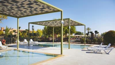 Le Riu Tikida Palmeraie est le grand resort par excellence. Vous allez vite le mesurer en passant les portes de sa vaste entrée et en découvrant les salons en série ! Ils ont été relookés il y a peu, et leur style moderne a désormais sa touche de chic. Les lustres géants ne pourront pas vous échapper ! Il faut dire aussi qu’ils sont superbes, suspendus à leurs coupoles. On dirait presque des arbres de Noël ! Et si vous venez en famille ici, tout le monde devrait y trouver son compte. En tout cas, personne ne trouvera à redire sur la taille de la piscine extérieure ! Elle est bordée d’une impressionnante série de transats et parasols beiges, mais vous pouvez aussi vous poser sur son îlot central qui prolonge le bar. Les plus petits vont adorer barboter dans les bassins qui leur sont réservés sous les tonnelles. Chacun son rythme et son espace ! C’est ce que vous apprécierez ici. Les bâtiments de couleur ocre sont dispersés sur un domaine immense. La balade dans les jardins jusqu’à votre chambre est très sympa par les allées pavées. Vous avez vu toutes ces espèces de plantes méditerranéennes ? Pas de doute, les jardiniers sont aux petits soins pour elles. Autant que l’équipe le sera pour vous, d’ailleurs !