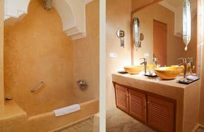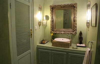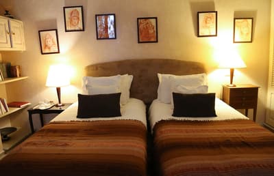 Vraiment cosy, elle est d’une simplicité exquise. Le cadre est idyllique, idéale pour se ressourcer et se couper du quotidien. Elle est parsemée de design marocain pour une décoration exotique. De beaux tableaux sont suspendus aux différents murs de la chambre et de belles lampes complémentent le tout. Quelques touches de couleurs égaient l’ensemble.