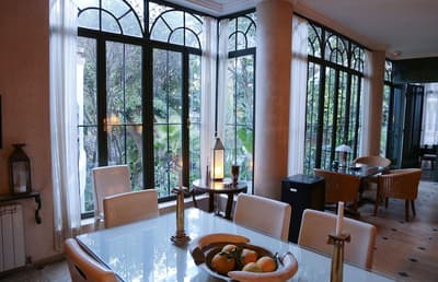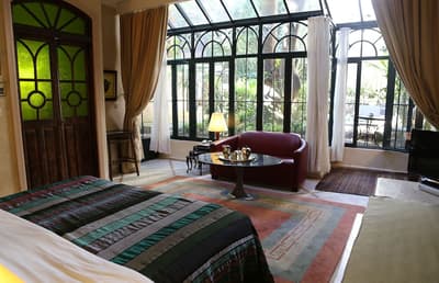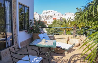 Rien de tel qu'une adresse vintage pour apprécier le charme rétro de Tanger ! Mobilier Art déco, lignes années 1950 ou chaises tulipe, on plonge dans l'univers de deux chineurs invétérés, amoureux des belles choses et surtout de la ville du détroit où ils se sont installés sur un coup de coeur ! A la Maison de Tanger, vous serez chez eux mais aussi chez vous, ce cocon ultra cosy de 700 m² et 8 chambres est comme une grande maison de famille où l'on aime se retrouver pour les vacances -elle a d'ailleurs ses addicts. L'hiver, il y a toujours un bon feu de cheminée qui crépite dans le grand salon, pour cocooner ou rencontrer ses hôtes autour d'un drink et chiner leurs bonnes adresses. Ca vous consolera de ne pas pouvoir nager dans la piscine, réservée aux beaux jours. L'été, on mixe avec le jardin, une oasis secrète en plein centre ville, et avec le grand toit-terrasse. Thé à la menthe ou apéritif coucher de soleil, c'est the spot to be pour un tête à tête avec d'incroyables panoramas sur la Méditerranée. Oubliez la plage, on ne se baigne pas dans la baie mais plus loin, et peaufinez votre forme dans la salle de fitness donnant sur le jardin, la belle africaine est une ville de collines, vous allez en prendre plein la vue, et capter pourquoi Tanger est si arty !