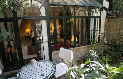 En plein centre, une oasis de verdure, et une vraie maison de famille, cosy et vintage, où palpite l'esprit du Tanger artiste. Pour une escapade romantique à deux ou une étape en famille.